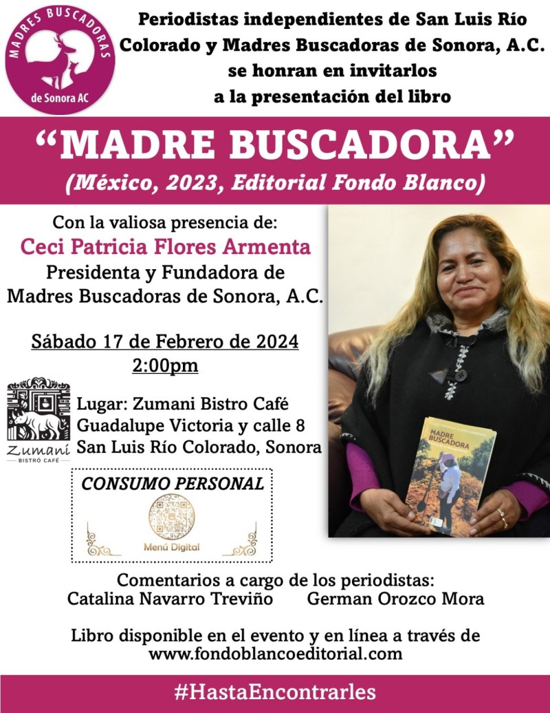 San Luis Río Colorado, Sonora.- La activista sonorense Cecilia Patricia Flores Armenta, conocida por liderar y fundar el colectivo Madres Buscadoras de Sonora, presentará su libre también en San Luis Río Colorado.